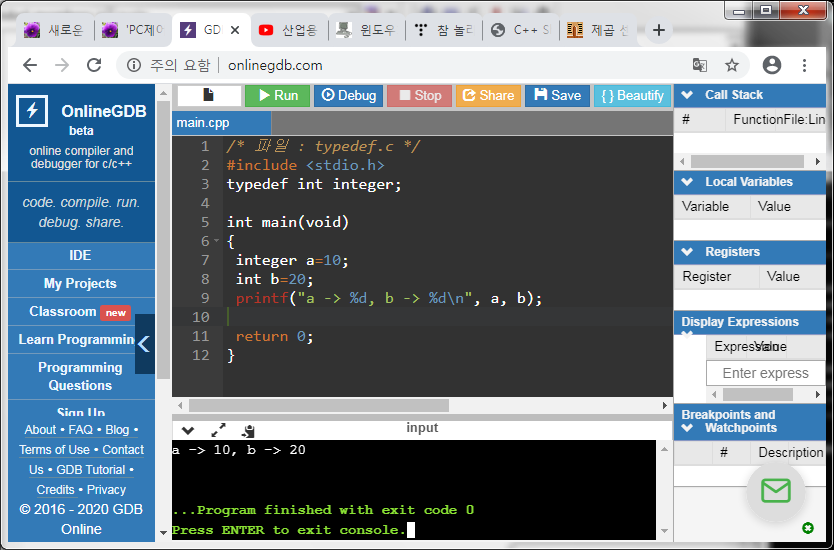 GDB online Debugger | Compiler - Code, Compile, Run, Debug online C, C++