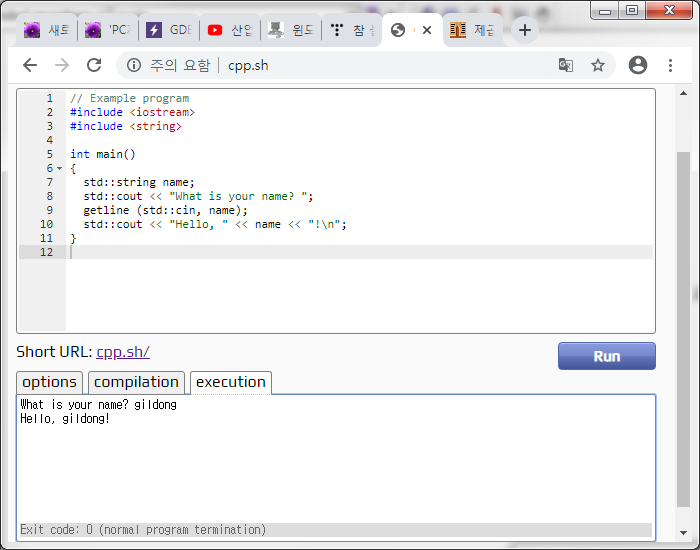 visual studio c++ 프로그래밍 코드를 웹에서 테스트 할 수 있다.