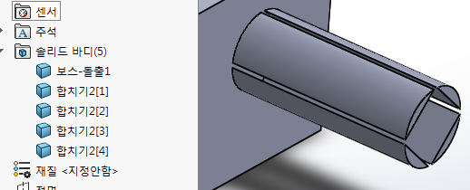 '합치기'를 클릭하고 '추가'-육면체와 원기둥을 합쳐준다.