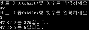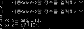 비트 이동 연산자(<< , >>)의 결과