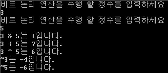피연산자 정수 값(32비트)을 비트 단위로 논리 연산을 수행하는 연산자.