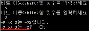 이동한 값 00000000 00000000 00000000 00000010 (-2)