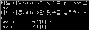47과 -47을 3비트 이동한 결과를 보자