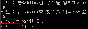 9 << 3의 결과는 9 * 2^3 = 72