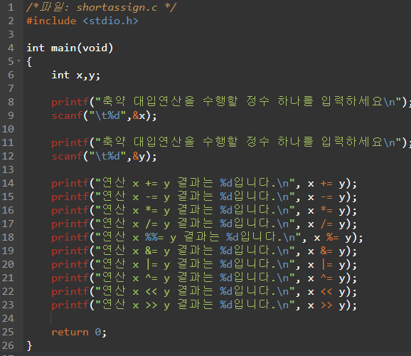 | 축약 대입 연산자 | 의미 |