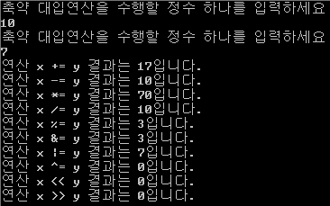 대입 연산자와 산술연산자를 합쳐 놓은 듯한 연산자