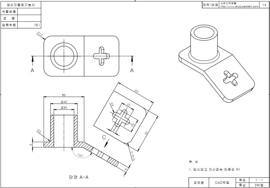 | 생산자동화기능사 CAD작업(17번) 모델링 (0) | 2020.05.11 |