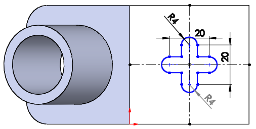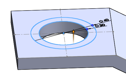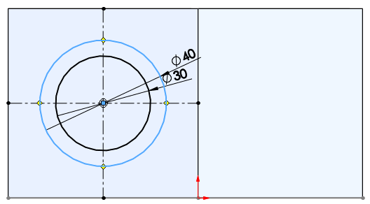 중심선을 긋고 지름 30, 지름 40인 원을 스케치한다.