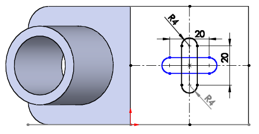 오른쪽 면 위에 돌출 컷을 위한 스케치를 해준다.