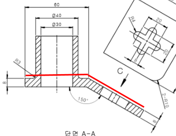 아래 도면의 적색 선 부분의 형상을 스케치한다.