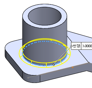 원통과 면의 접하는 부분은 필렛을 3만큼 적용한다.