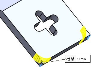 그리고 오른쪽 모서리 부분에 필렛 10을 적용하고 모델링을 완성한다.