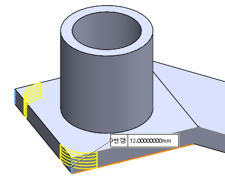 이어서 왼쪽 형상의 모서리에 필렛 처리(R12)를 해준다.