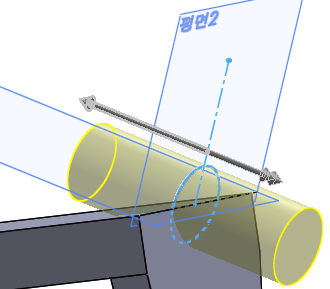 '평면1'에 원통 형상의 중심이 지나가게 하기 위해