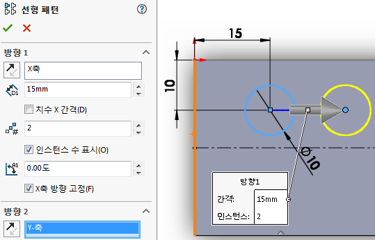 원을 클릭하고 '선형스케치패턴'을 클릭한다.