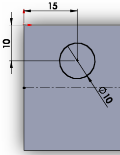 윗면 왼쪽편으로 가서 아래와 같이 원을 스케치.