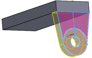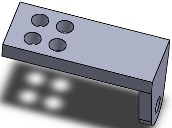 오른쪽 위쪽 모서리 부분을 원 형태의 형상으로 돌출 컷을 해야 한다.