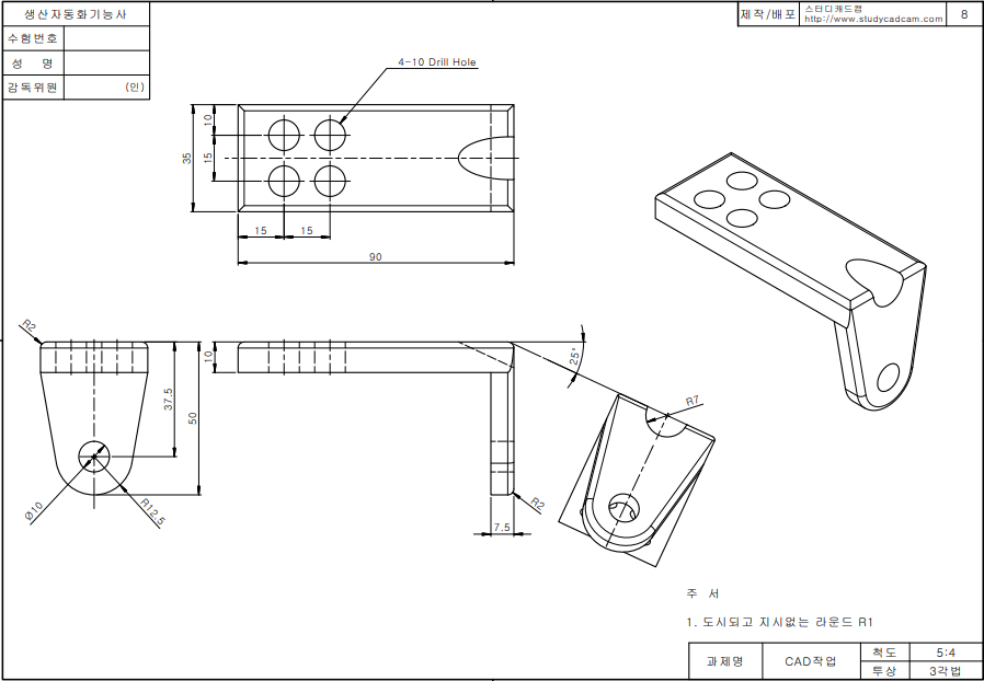 | 생산자동화기능사 CAD작업(10번) 모델링 (0) | 2020.06.02 |