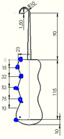 스플라인 곡선과 원은 조금 떨어뜨려 그린다. 굴곡과 치수에 주의한다