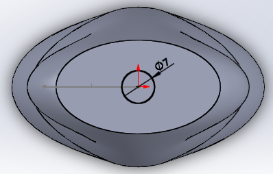 윗면에 타원을 스케치하고 치수기입 후 완료한다.