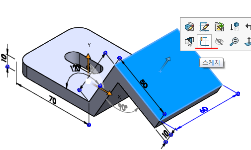 왼쪽 형상 작업을 마치면 오른쪽 면을 클릭하고 스케치 작업을 한다.