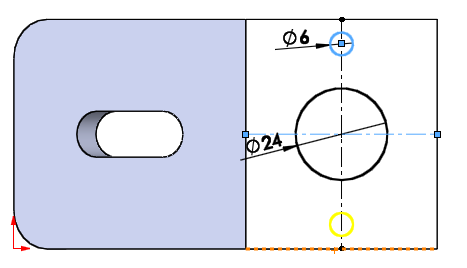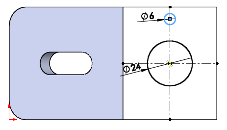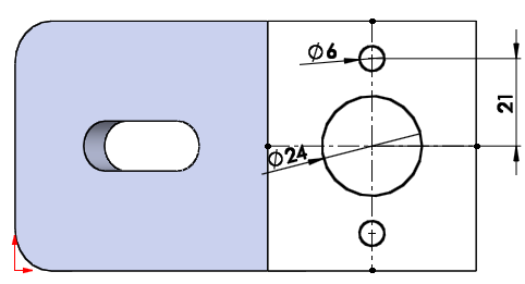 한쪽 원과 중심점을 치수 구속을 21로 시켜준다.
