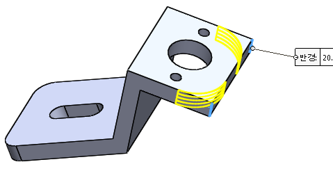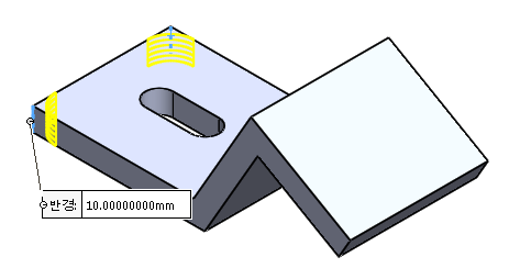 돌출 작업 후에 왼쪽 모서리에 필렛을 10만큼 적용해준다.