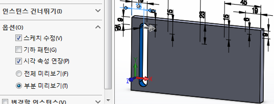 '스케치 수정 패턴'은 방향을 선이 아닌 치수를 기준으로 잡는다.