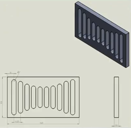 두께 10의 판 형태를 만들고 '직선홈' 장공을 만든다.