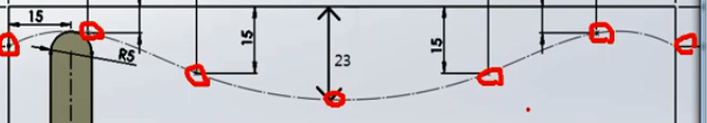 보조선은 스플라인으로 그리고 경로에 점을 7개를 찍는다.