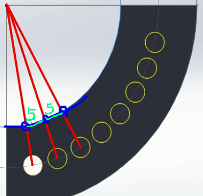 이전으로 돌아가서 중앙의 보조선 원을 패턴방향을 잡고 5mm를 주면 아래와 같다.