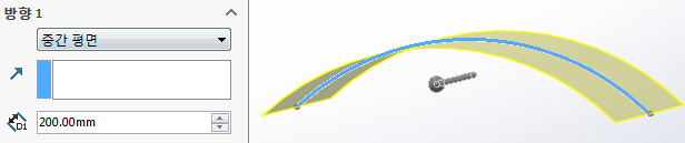 선을 돌출하는 '곡면-돌출 곡면' 기능을 이용한다.