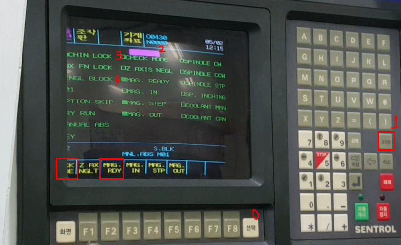 오른쪽의 조작판 버튼(1번)을 눌러서 화면의 분홍탭이 2번 위치에 오게 한다.