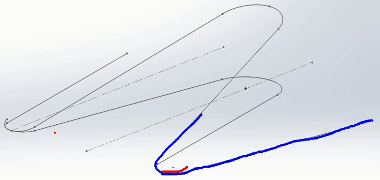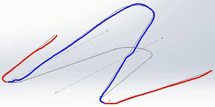 추출된 곡면과 기존의 평면 스케치를 비교해서 본다.