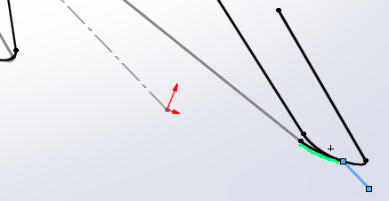 그런데 스케치를을 보면 직선에서 원, 원에서 직선으로 이어지는 부분에 점이 있다.