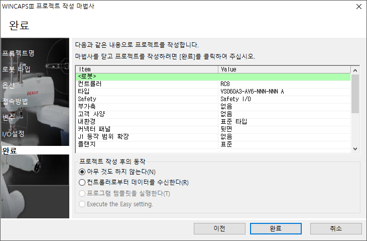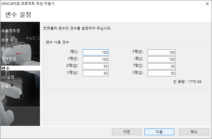 메모리 120, 121, 122번에 3지점의 위치데이터를 입력한 후 로봇을 이동시킨다.