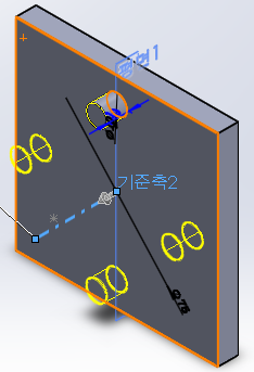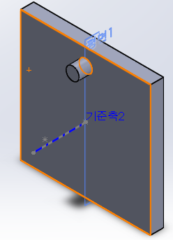 '참조형상-기준측' - '선/모서리/축'를 이용하는 방법이다.