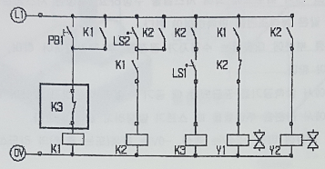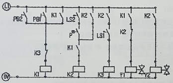 LS1이 동작 끝에 관계가 있어야만 K3 b접점이 닫혀져서 PB1을 누를때 동작이 된다.