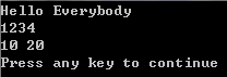 printf("%d %d \n", 10, 20);