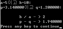 printf("\tp - q - > %f\n", p-q);
