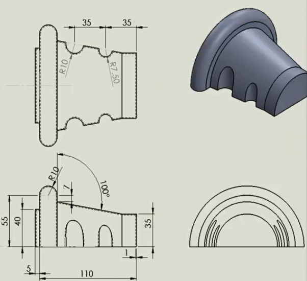 윗면에서 원형으로 굴곡진 부분을 스케치 작업을 한다.