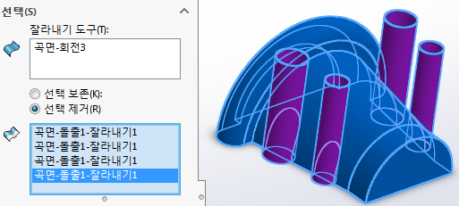 '선택제거'를 체크하고 제거될 객체를 선택한다.
