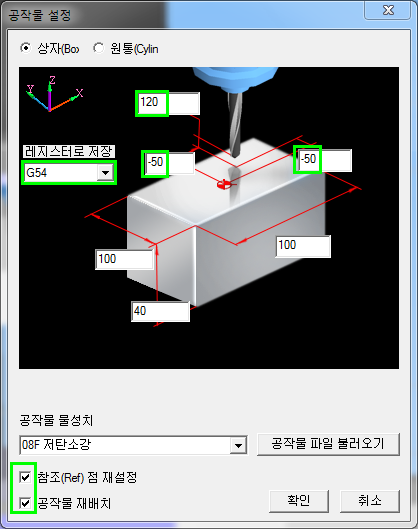 참조점 재설정과 공작물 재배치도 체크해준다.