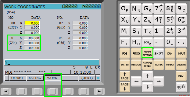 G90 G10 L2 P1 X100. Y100. Z100.;