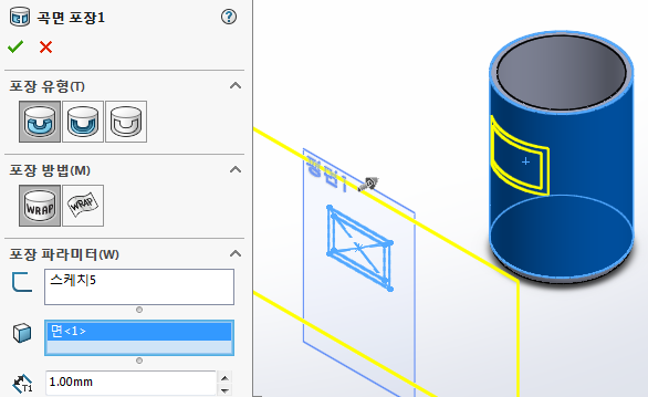 곡면 포장에 대한 기본 스케치를 해야 한다.