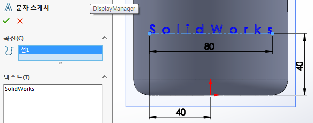 기준면에 문자를 스케치하고 곡면에 문자를 새겨본다.