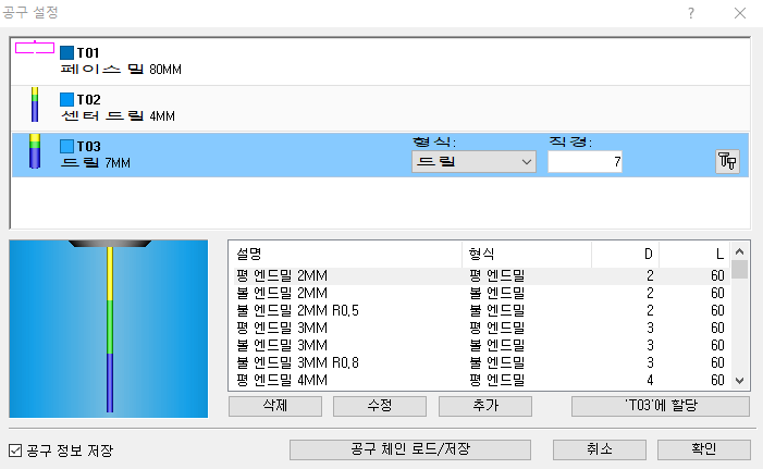 세번째 공구를 설정한다.