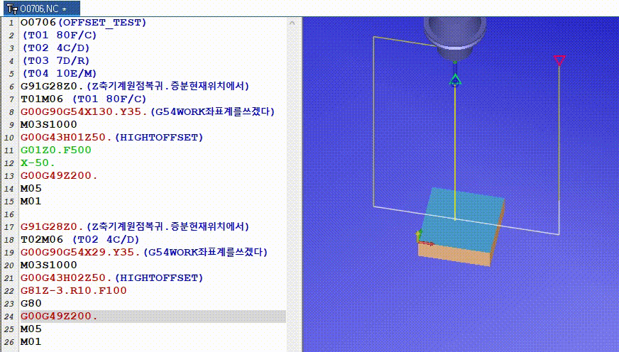 공구를 두개(T01, T02)까지 설치하고 프로그래밍 코드를 작성해보자.