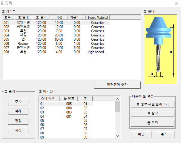 공구 설정후 코드를 추가한다.