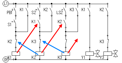 스테퍼회로 처럼 K1릴레이의 a접점이 다음 단계에서 쓰이고 있다.